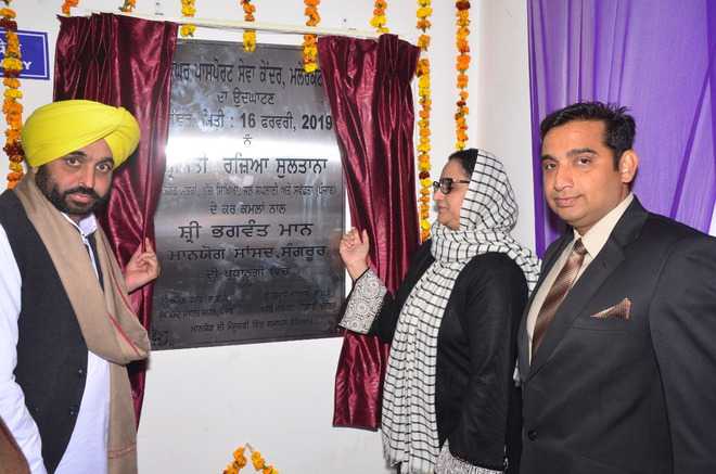ਫੋਟੋ ਕੈਪਸ਼ਨ: 16 ਫਰਵਰੀ 2019 ਨੂੰ ਮਲੇਰਕੋਟਲਾ ਵਿਖੇ ਪਾਸਪੋਰਟ ਦਫਤਰ ਦਾ ਉਦਘਾਟਨ ਕਰ ਮੌਕੇ ਲੋਕ ਸਭਾ ਮੈਂਬਰ ਸੰਗਰੂਰ ਭਗਵੰਤ ਮਾਨ, ਸਥਾਨਿਕ ਵਿਧਾਇਕਾ ਰਜ਼ੀਆ ਸੁਲਤਾਨਾ ਅਤੇ ਅਧਿਕਾਰੀ ।