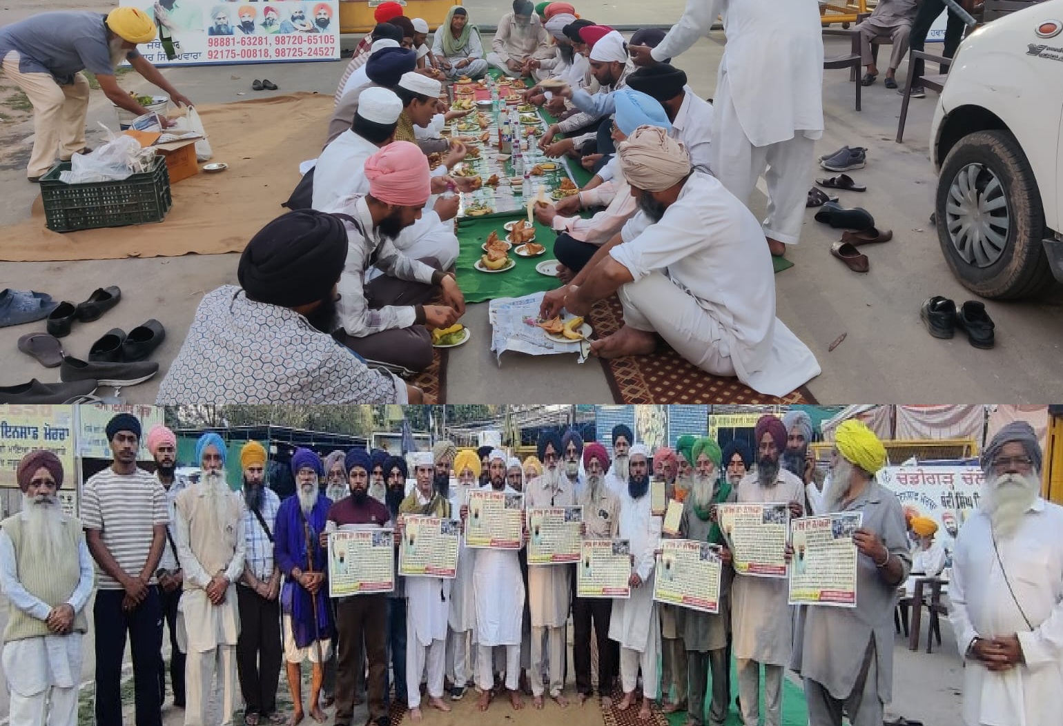 ਮਲੇਰਕੋਟਲਾ, 20 ਮਾਰਚ (ਅਬੂ ਜ਼ੈਦ): ਚੰਡੀਗੜ੍ਹ-ਮੋਹਾਲੀ ਦੀਆਂ ਬਰੂਹਾਂ ਉੱਤੇ 7 ਜਨਵਰੀ 2023 ਤੋਂ ਸਜ਼ਾਵਾਂ ਪੂਰੀਆਂ ਕਰ ਚੁੱਕੇ ਬੰਦੀ ਸਿੰਘਾਂ ਦੀ ਰਿਹਾਈ ਅਤੇ ਬੇਅਦਬੀਆਂ ਦੇ ਇਨਸਾਫ ਲਈ ਕੌਮੀ ਇਨਸਾਫ ਮੋਰਚੇ ਵੱਲੋਂ ਲਗਾਏ ਗਏ ਧਰਨੇ ਵਿੱਚ ਇੱਕ ਵਿਲੱਖਣ ਤਸਵੀਰ ਦੇਖਣ ਨੂੰ ਮਿਲੀ । ਮੋਰਚੇ ਵੱਲੋਂ ਜੱਥੇਦਾਰ ਜਗਤਾਰ ਸਿੰਘ ਹਵਾਰਾ ਦੇ ਪਿਤਾ ਗੁਰਚਰਨ ਸਿੰਘ ਦੀ ਸਰਪ੍ਰਸਤੀ ‘ਚ ਮੁਸਲਮਾਨਾਂ ਦੇ ਪਵਿੱਤਰ ਰਮਜ਼ਾਨ ਉਲ ਮੁਬਾਰਕ ਨੂੰ ਸਮਰਪਿਤ ਰੋਜ਼ਾ ਇਫਤਾਰੀ ਦਾ ਆਯੋਜਨ ਕੀਤਾ ਜਿਸ ਵਿੱਚ ਪੰਜਾਬ ਭਰ ਵਿੱਚੋਂ ਵੱਖ-ਵੱਖ ਧਰਮਾਂ, ਜਾਤਾਂ, ਵਰਗਾਂ, ਖਿੱਤਿਆਂ ਅਤੇ ਜੱਥੇਬੰਦੀਆਂ ਦੇ ਪਤਵੰਤਿਆਂ ਨੇ ਇੱਕ ਦਸਤਰਖਾਨ ਉੱਤੇ ਬੈਠਕੇ ਰੋਜ਼ਾ ਇਫਤਾਰ ਕੀਤਾ । ਜਿਸਨੇ ਸਮਾਜ ਵਿਰੋਧੀ ਨਫਰਤ ਫੈਲਾਉਣ ਵਾਲਿਆਂ ਦੇ ਮੂੰਹ ਬੰਦ ਕਰਦਿਆਂ ਆਪਸੀ ਭਾਈਚਾਰਕ ਸਾਂਝ ਦਾ ਸੁਨੇਹਾ ਦਿੱਤਾ । ਇਫਤਾਰੀ ਤੋਂ ਪਹਿਲਾਂ ਵਿਸ਼ਵ ਸਾਂਤੀ, ਸਰਬਤ ਦੇ ਭਲੇ ਲਈ ਦੁਆ ਵੀ ਕੀਤੀ ਗਈ ।